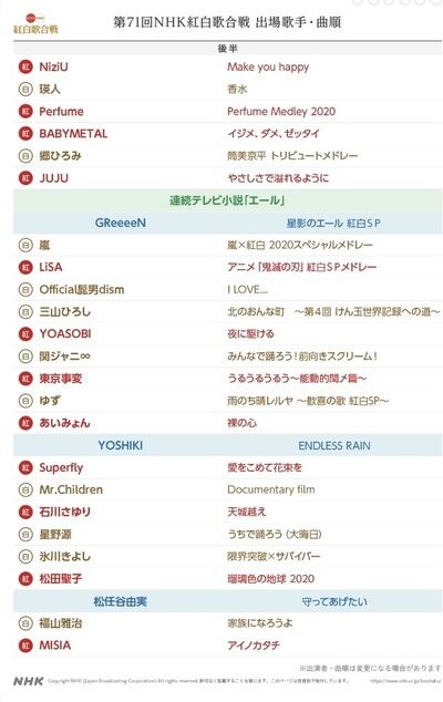 紅白歌合戦の曲順が決まりましたね~‼