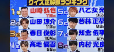 クイズ正解数ランキング2位おめでとう㊗