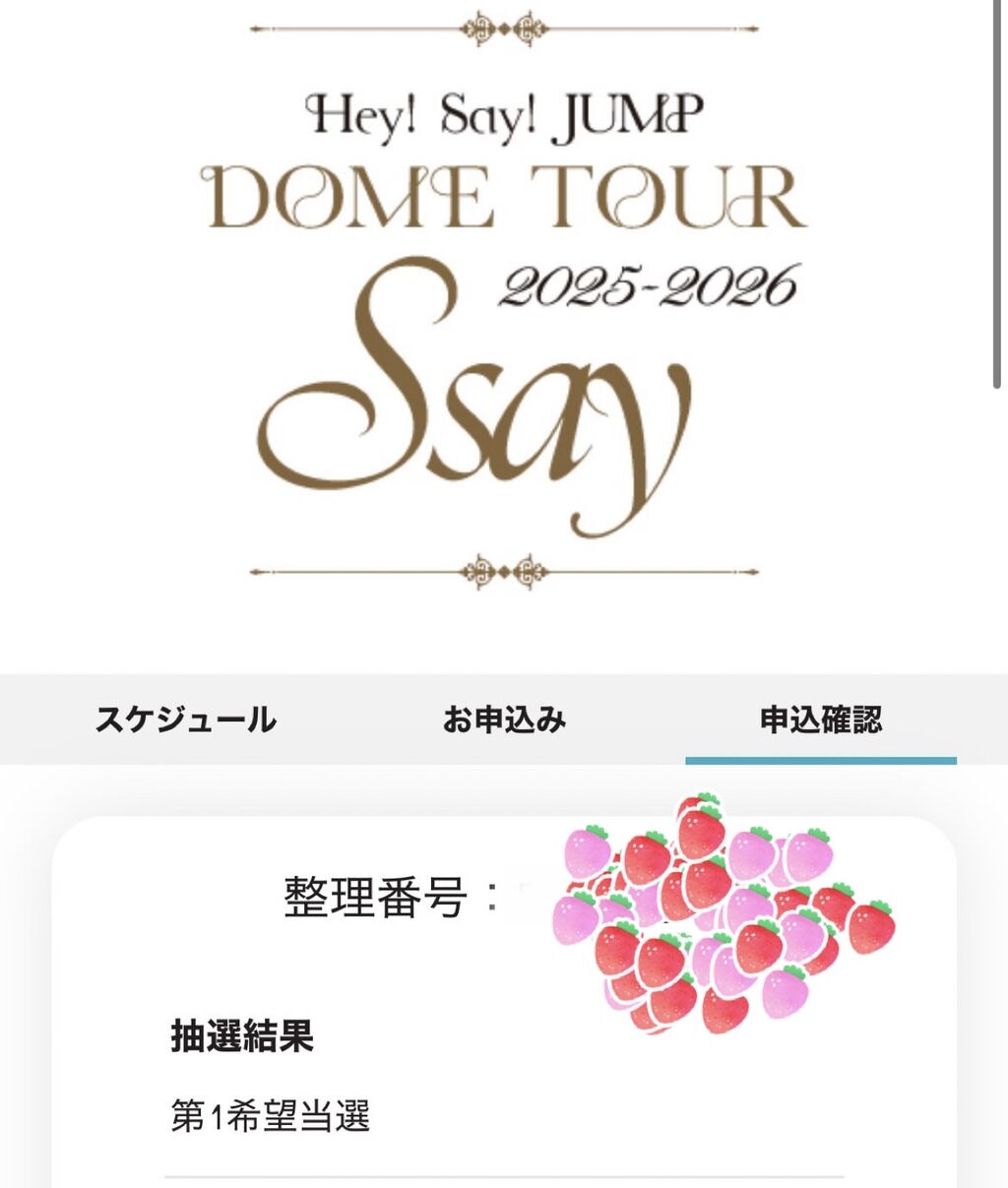 Hey!Say!JUMPドームツアー2025-2026無事に第一希望で当たりましたぁ🎯今年も来年も涼介JUMPくんに逢えるぅ😭🥰